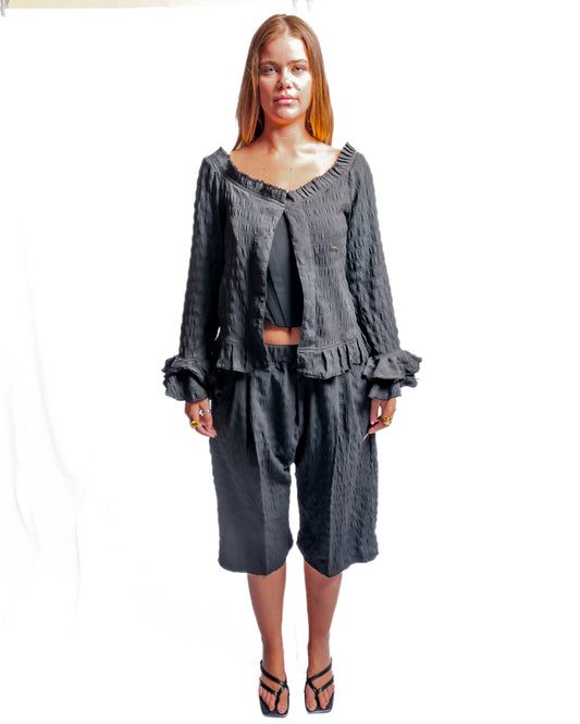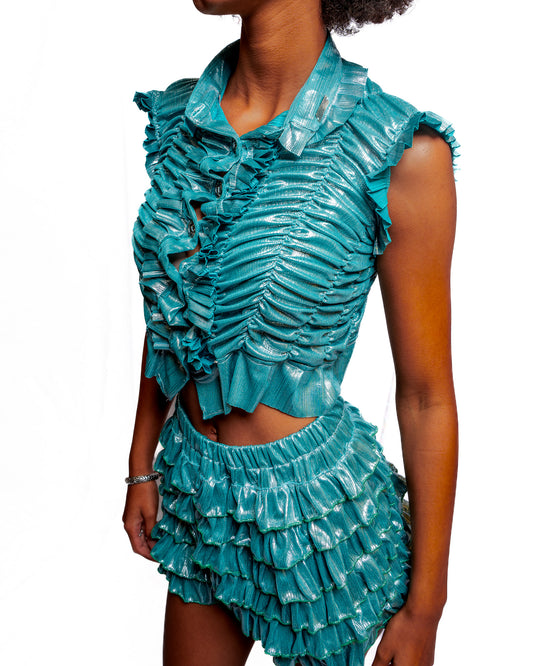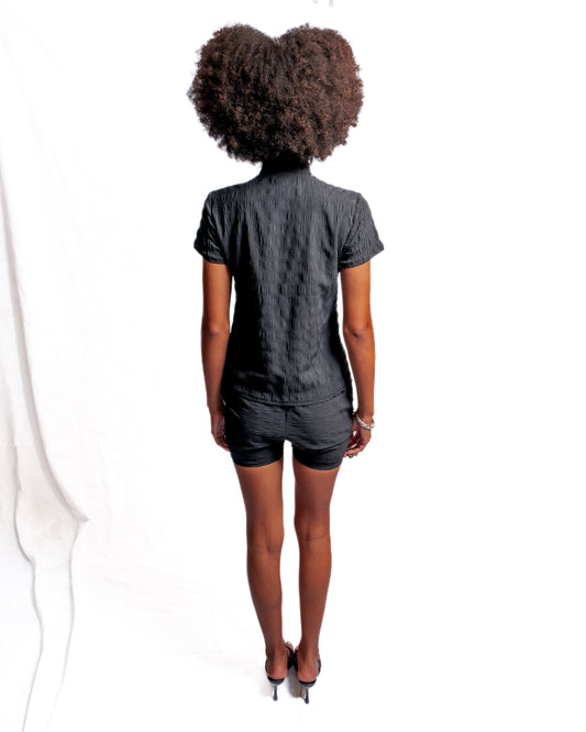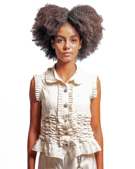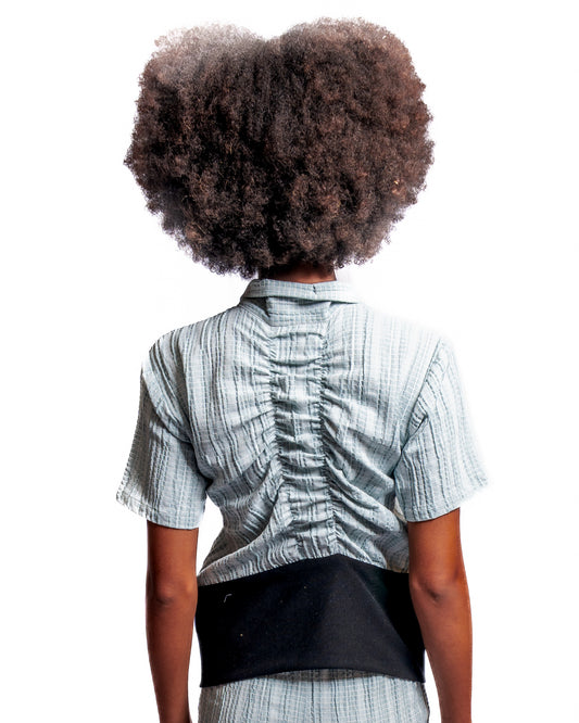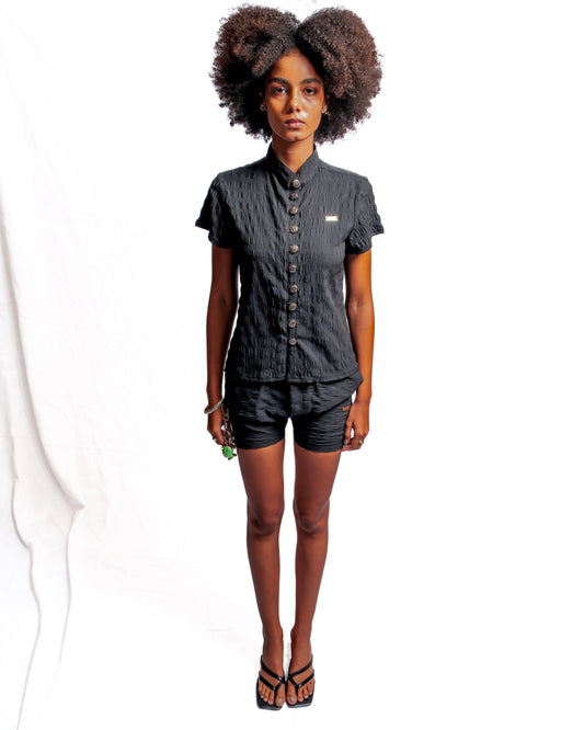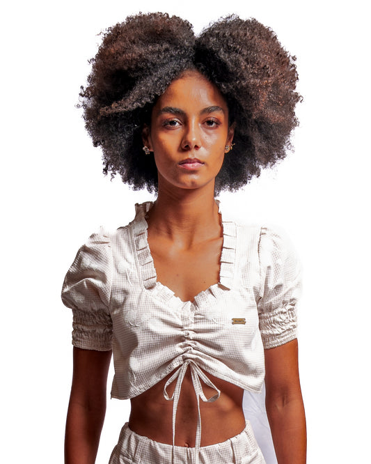 Shirred Flutter Sleeve Shirt - Plaid Brown