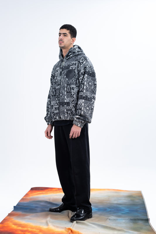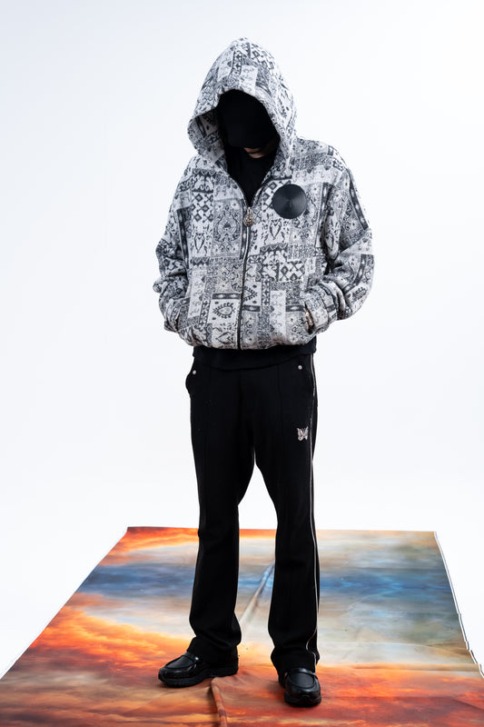 Gray Patterned Zip-up Hoodie