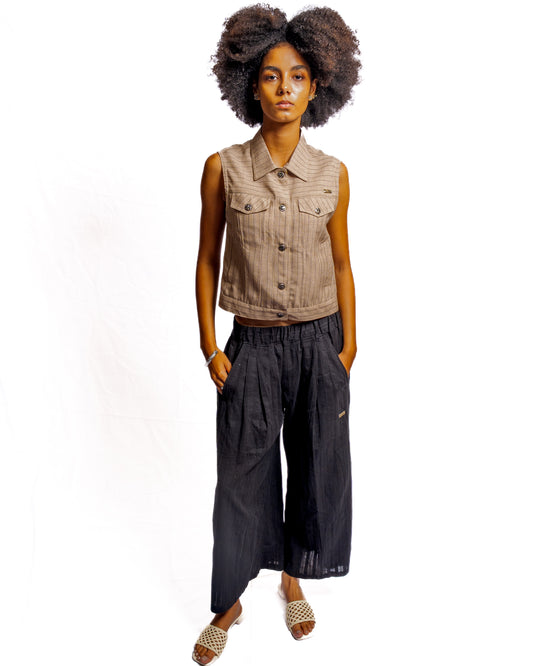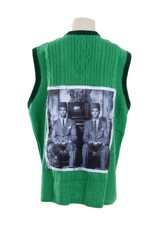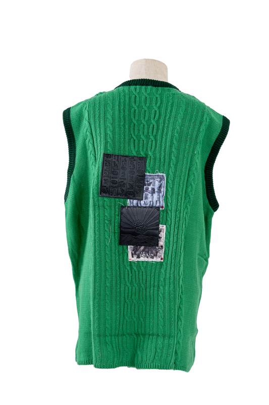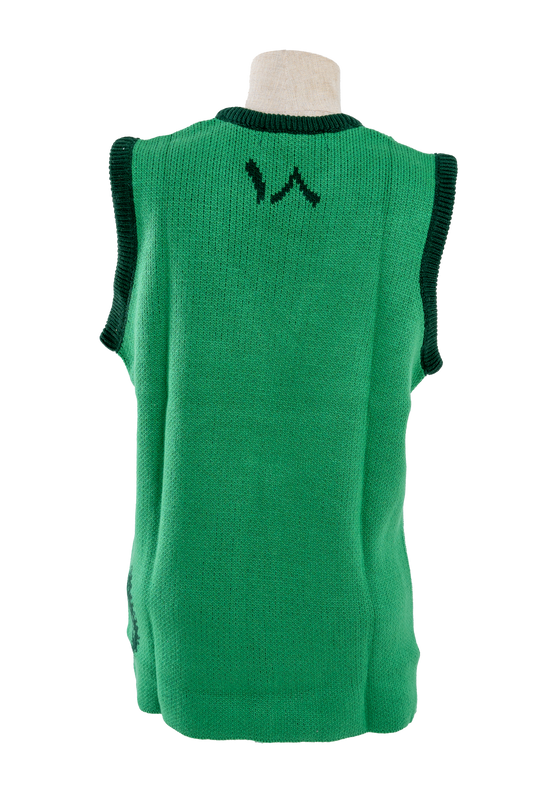 Green Knitted & Jacquard Vest with Genuine Leather Patches