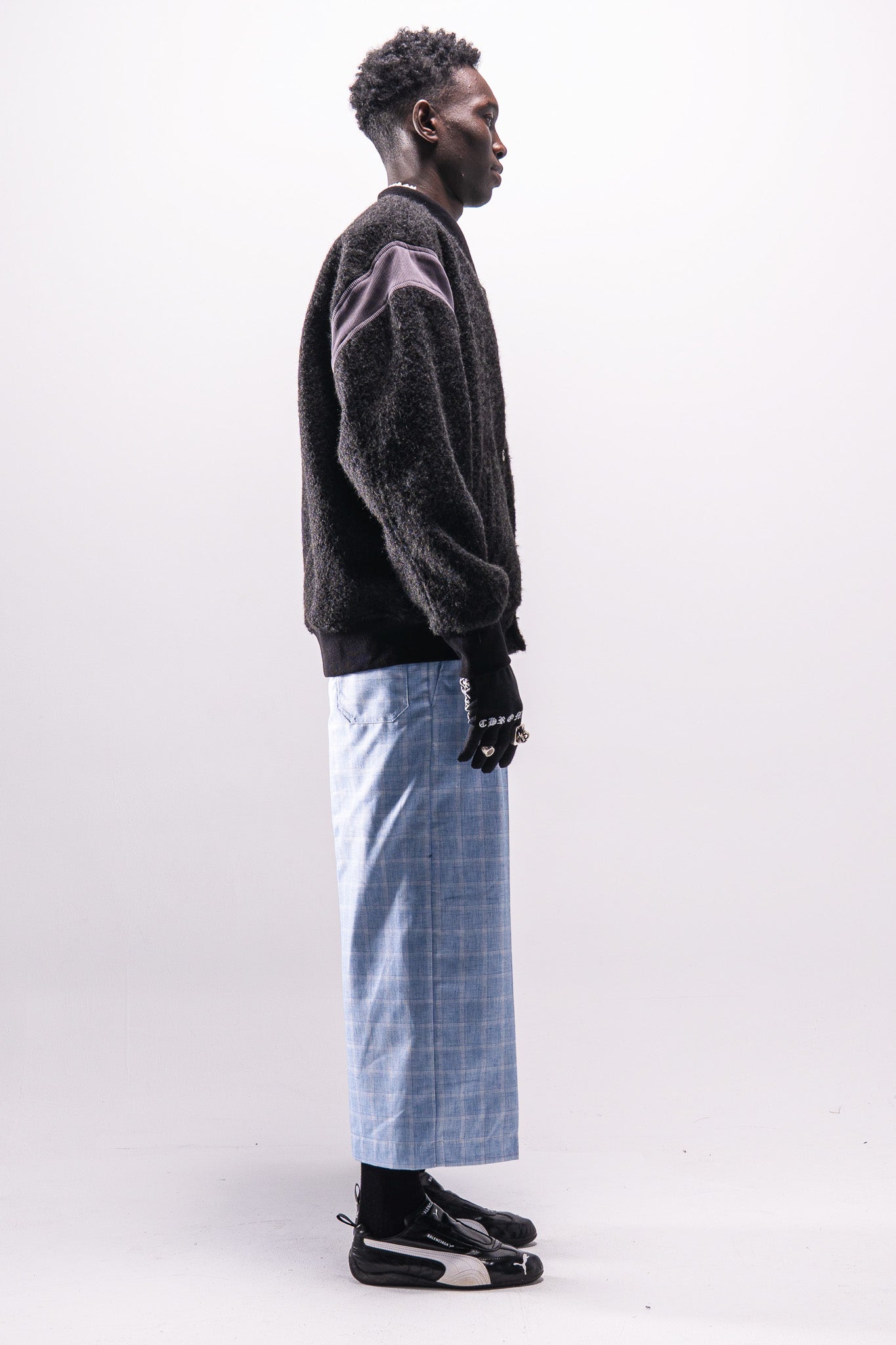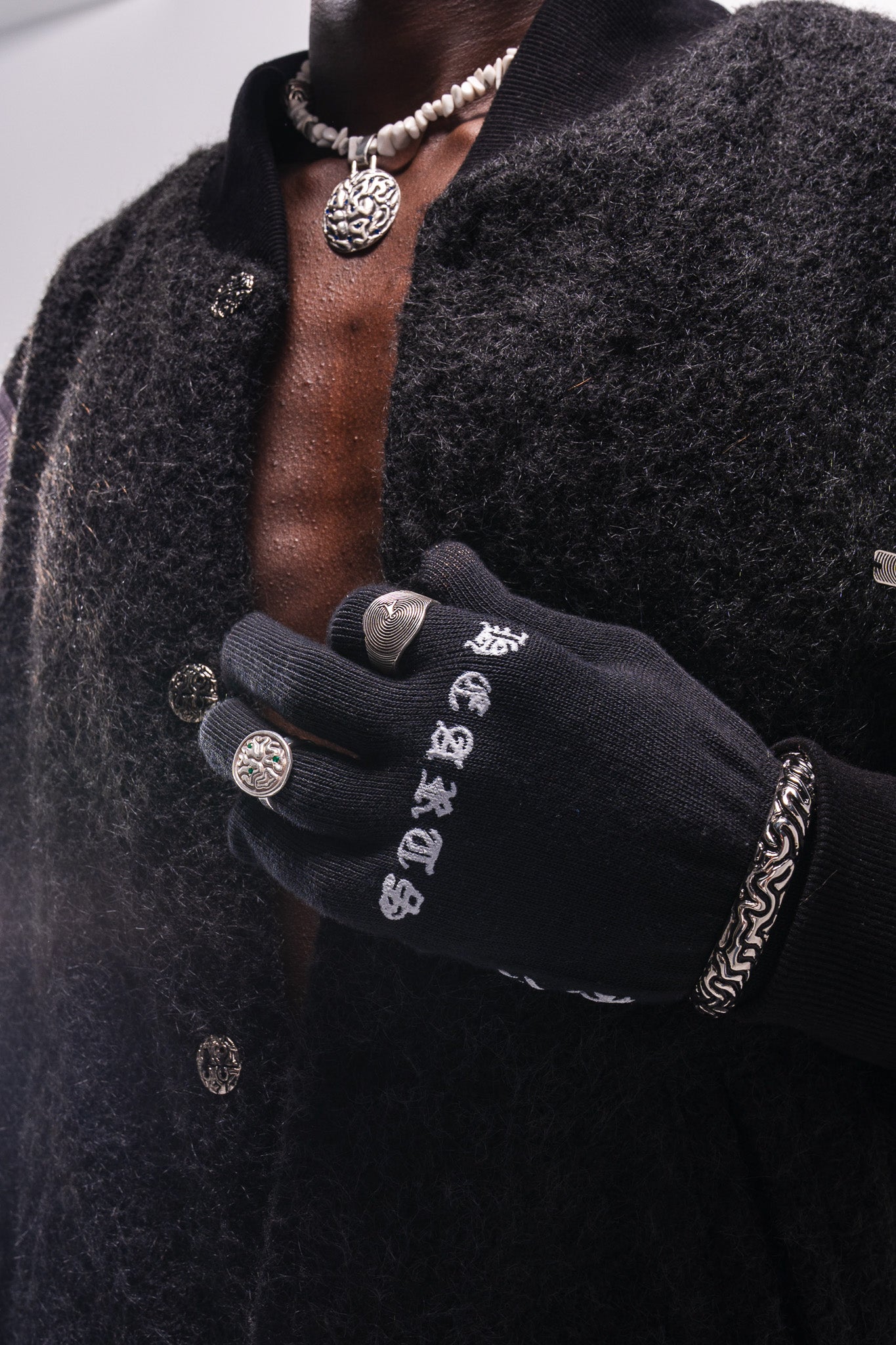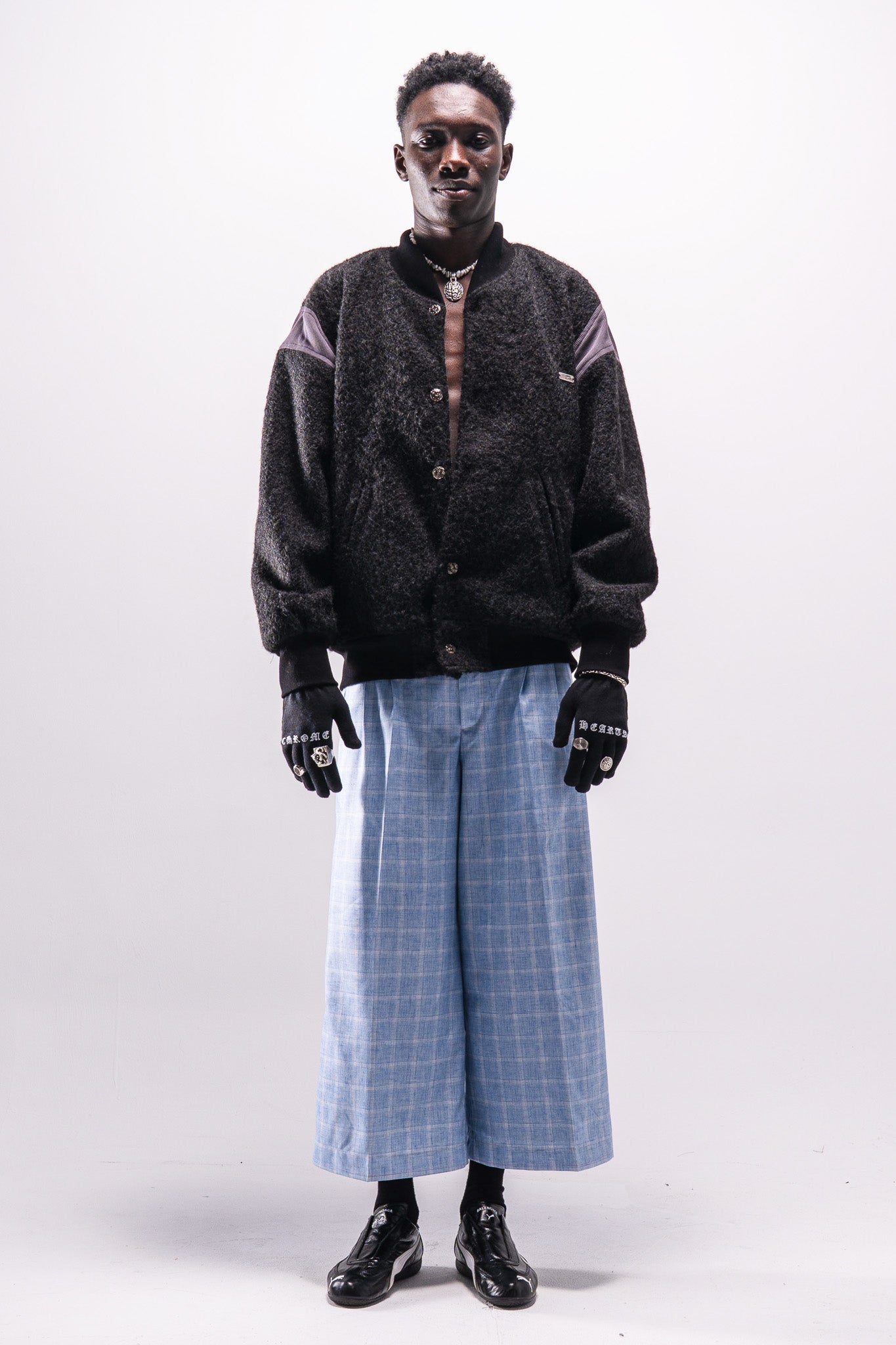Inspired by classic 90s varsity jackets. The silhouette remains familiar and understated, while Cortex influence appears through a wavy front edge and brain-shaped metal buttons used as closures. The focus is on texture, material, and subtle detailing rather than altering the core form.