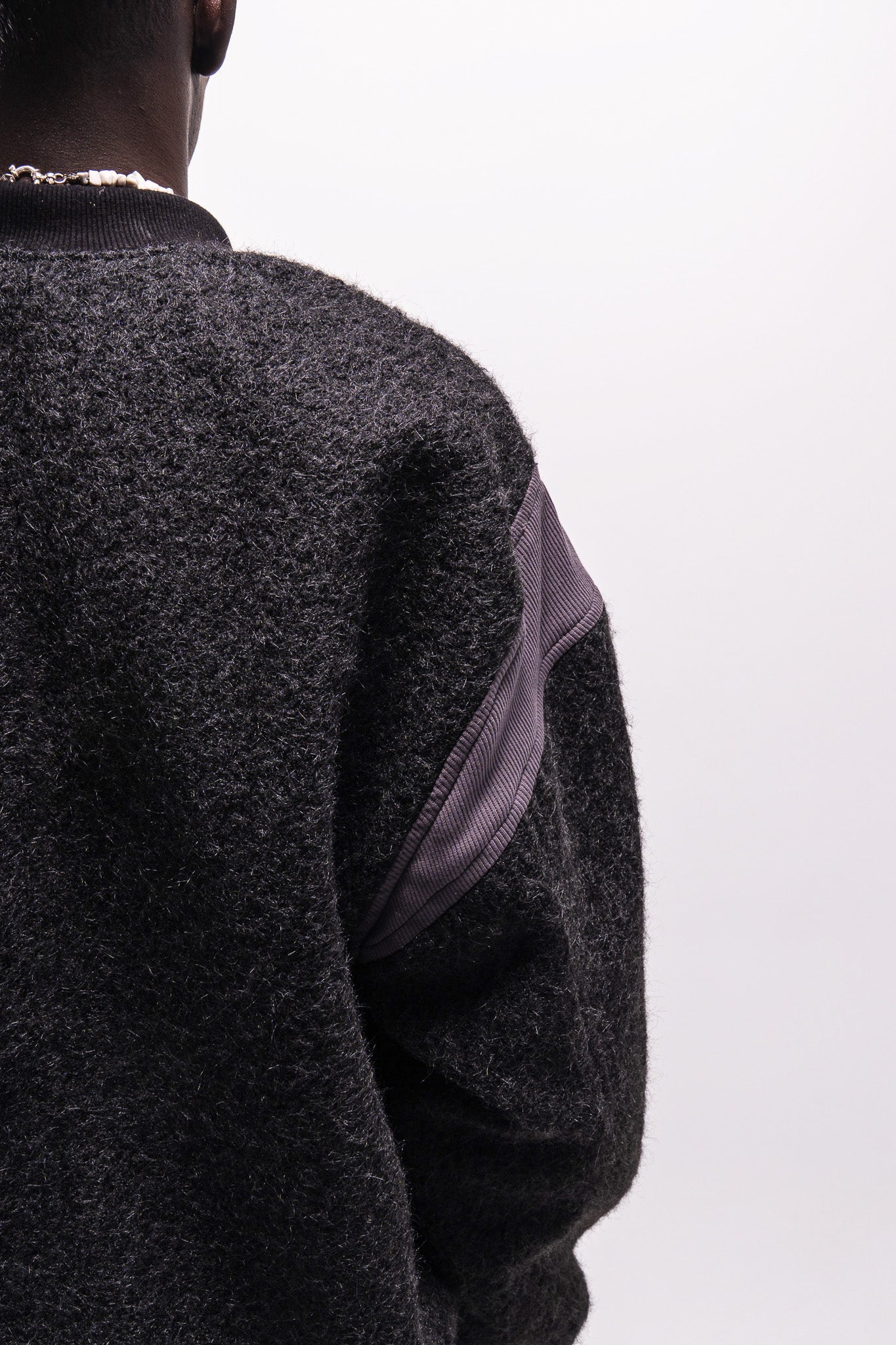 Turkish mohair body, selected for its softness, warmth, and rich texture. Finished with cotton rib at the bottom hem and sleeve cuffs for structure and comfort. Fully lined with Belgian satin, creating a smooth, refined interior contrast.
